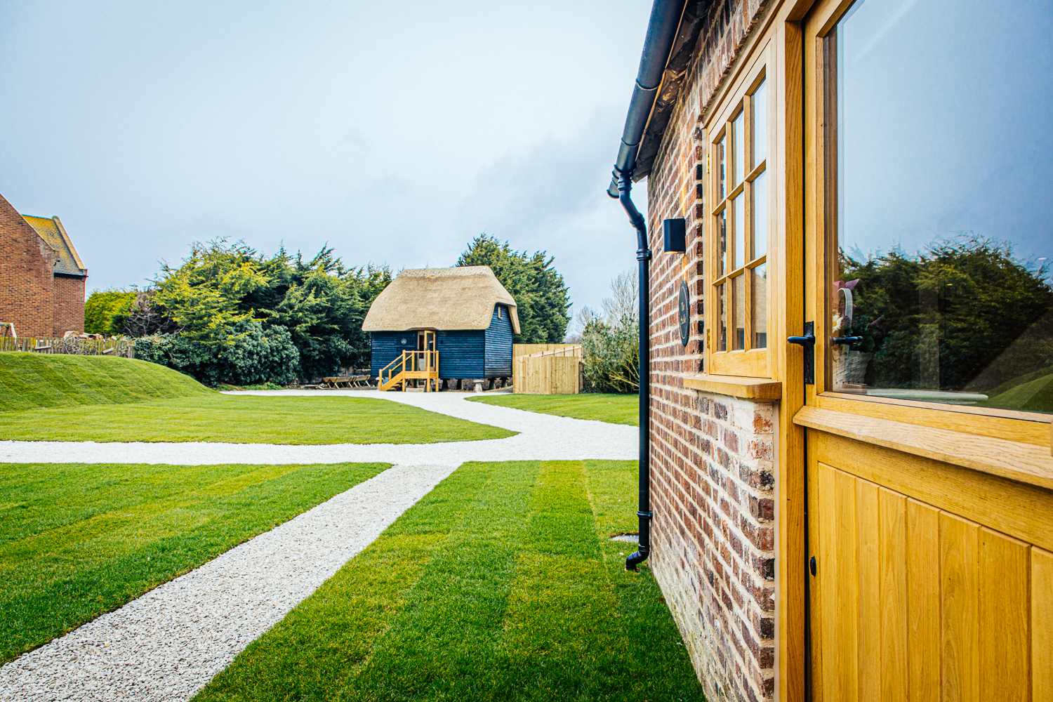 Outside, each barn has its own private parking area, patio and bistro seating, with the grounds around the barns very private and laid mainly to lawn.