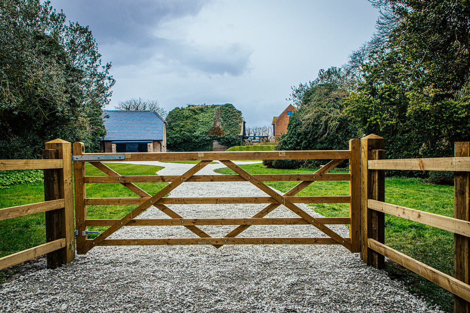 Access to the grounds is via a five bar gate leading to a private driveway to the original farmyard.