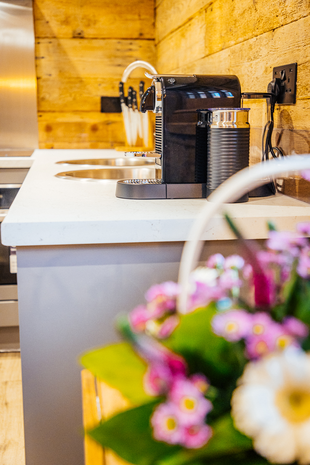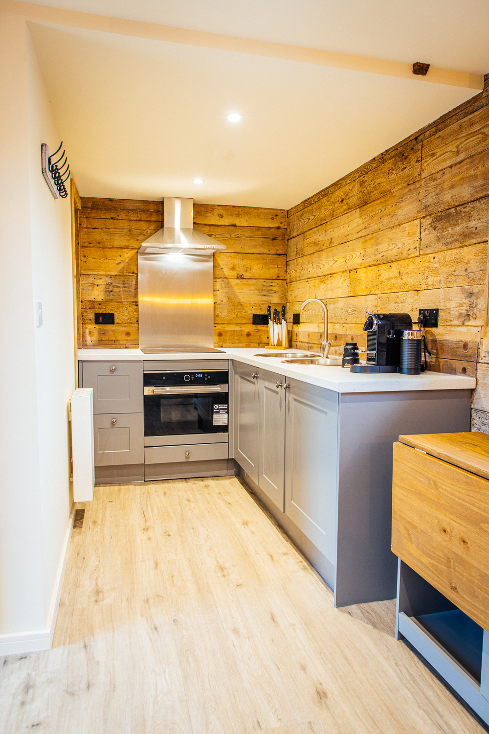 Your car has its own private space to the side of the Granary. Inside the original wooden walls have been retained with hidden insulation to ensure a cosy stay and downstairs you will find a snug lounge and kitchen equipped with a Nespresso coffee machine, kettle and a fridge stocked with fresh milk, soft drinks. a breakfast pack, homemade honey toasted muesli, and breakfast staples from our local butcher. A Smart TV and, of course, free broadband internet.