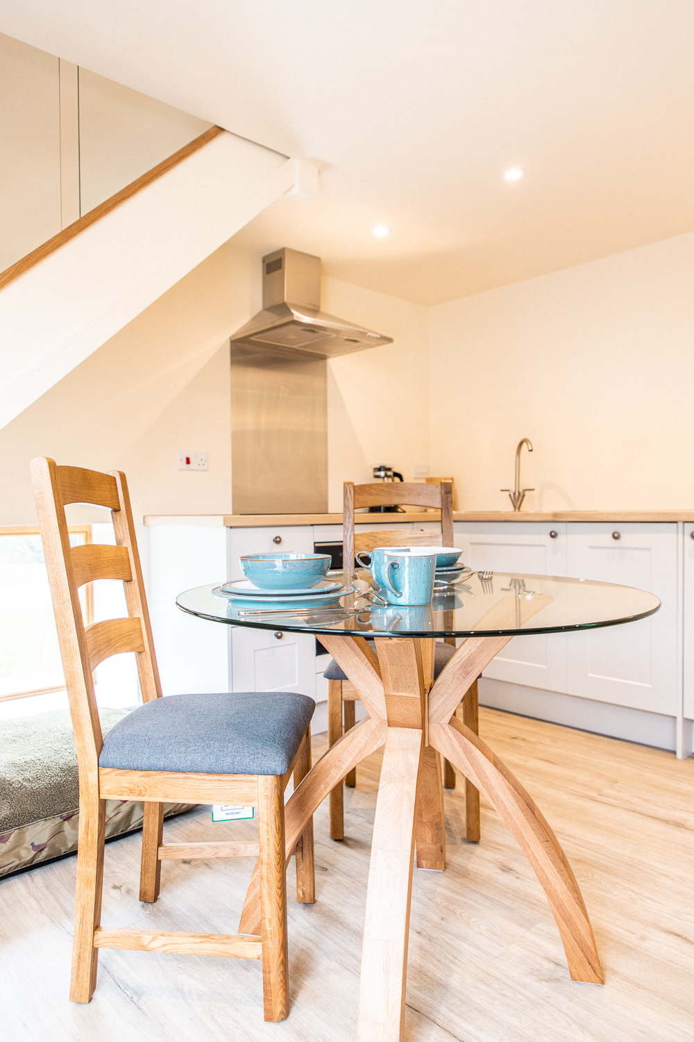 One quirky feature is a ground level window under the stairs, a space ideal for a dog to view the farmyard from the comfort of its bed. The lounge is traditionally furnished but with up to date technology, including a smart television and wifi connectivity. The stable is light and airy with a classic oak stable door opening onto your private patio area.